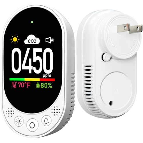 LSENLTY 二酸化炭素検出器 壁差し込み式 3 in 1 CO2メーター(温度、湿度、CO2値) 高精度二酸化炭素モニター アラーム機能と手動校正付き 400-5000PPM CO2検出範囲 自宅オフィス RV 温室で使いやすい、日本語説明書